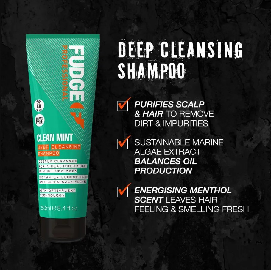 - Give your hair an invigorating deep cleanse with the Fudge Professional Clean Mint Shampoo.