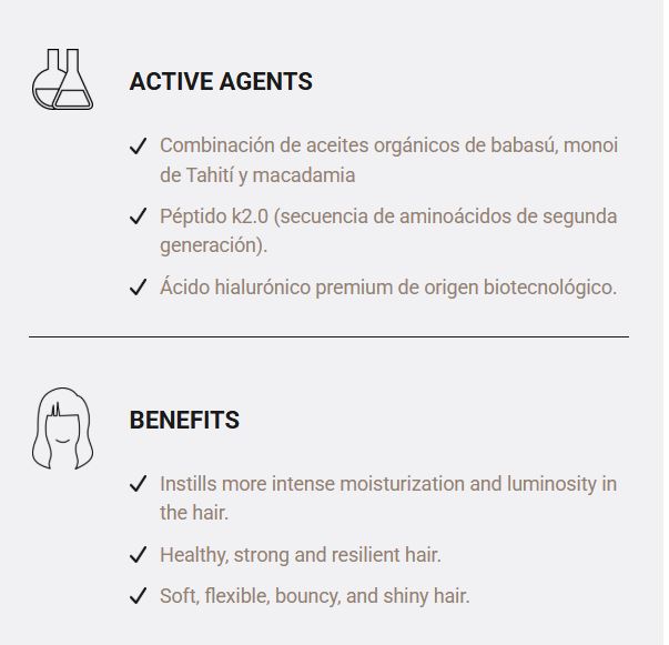 The k2.0 peptide and premium hyaluronic acid selectively work on the most damaged areas, providing deep hydration. Restores and repairs the hair’s natural keratin. It provides exceptional resistance to breakage, shine, smoothness, and manageability to hair that requires a deep restoration.