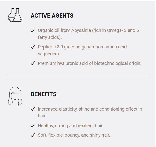k2.0 provides strength, shine, body, elasticity, and manageability with long-term results.