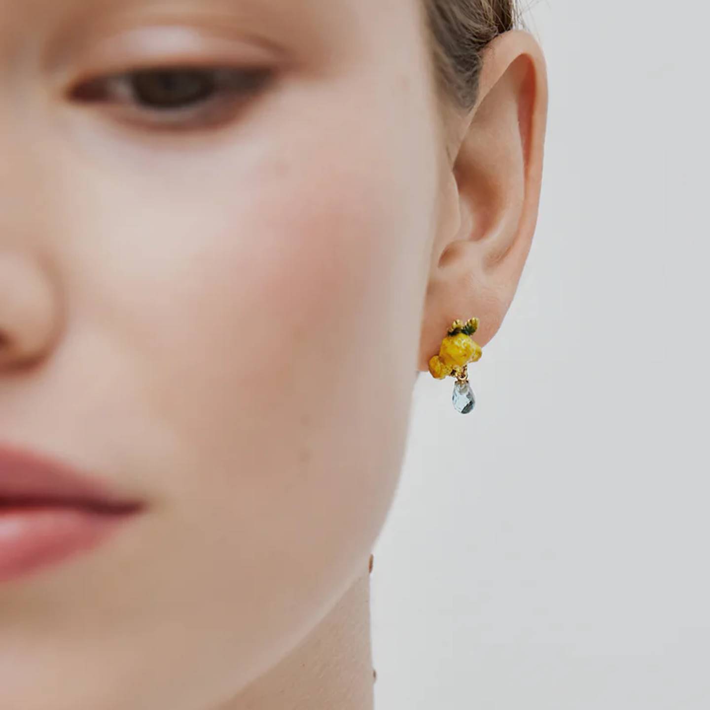 Les Néréides Earings Mimosa Flower and Leaves JARDINS DE PROVENCE [LNABJP103T/1]