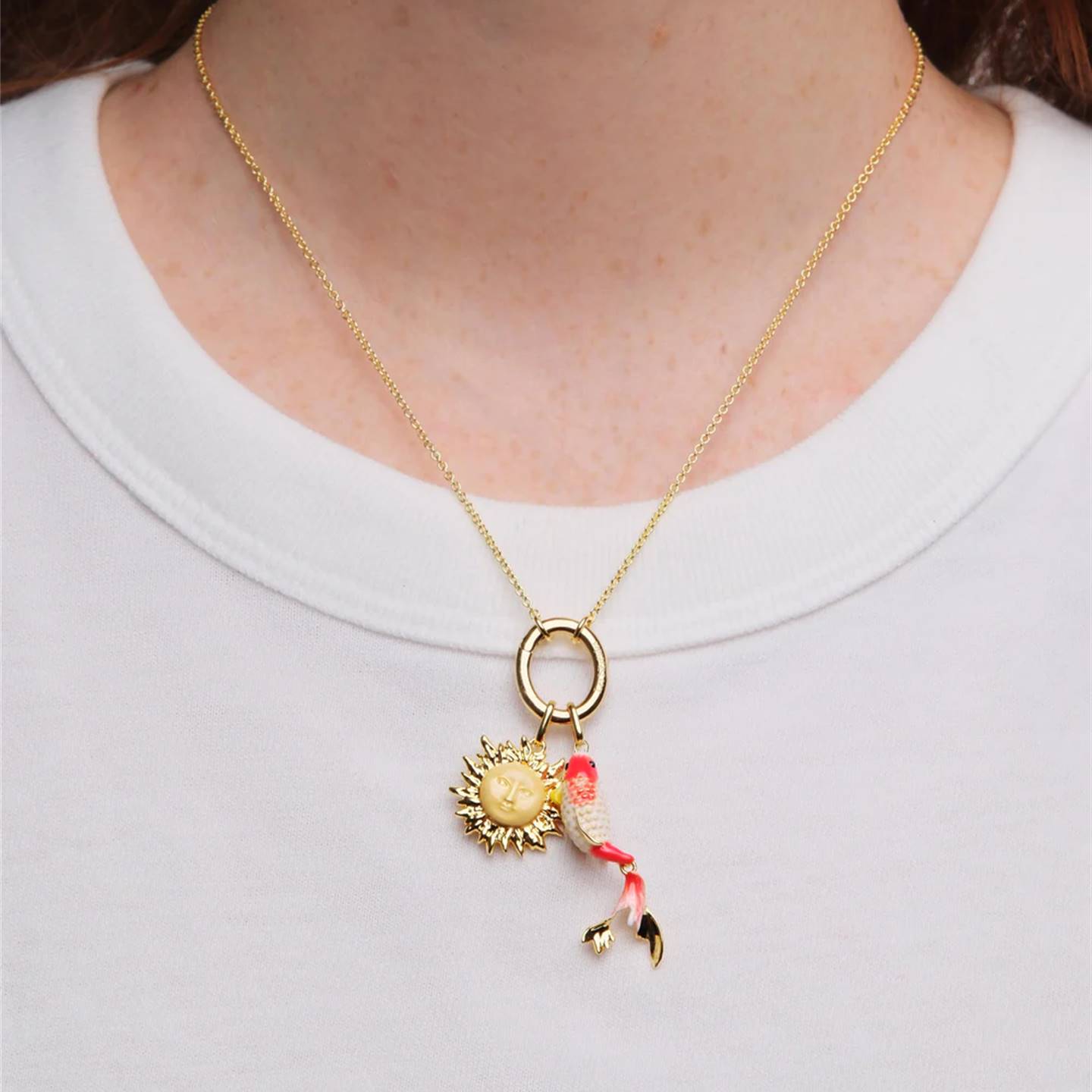 - Hand-painted koi carp fish pendant. Simply hang on our bespoke invisible clasp ring, or stack them together and choose one of the three available chains to create your own unique design.