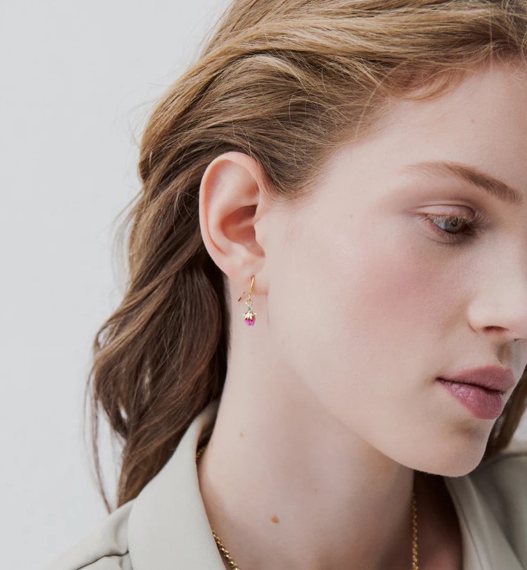 Les Néréides Hook Earing Dangling Rosebud with a White Crystal PROMENADE A BARBIZON