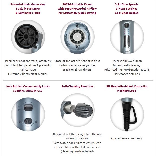 - Powerful Ionic Generator, Seals in Moisture & Eliminates Frizz