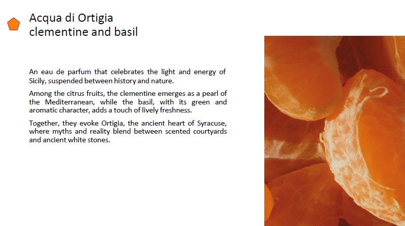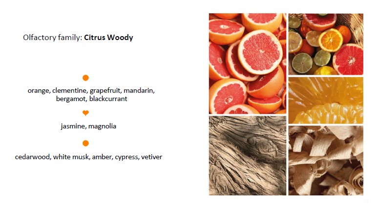 Top notes: Orange, clementine, grapefruit, mandrin, bergamot, blacurrant