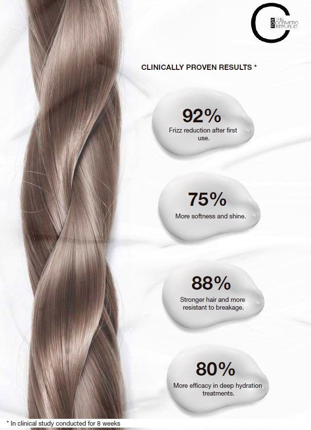 - In addition, it promotes moisture retention in the hair, visibly improving its elasticity and texture.