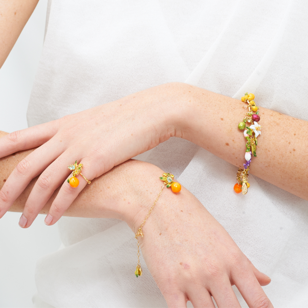 - Featuring a hand-painted orange charm delicately crafted with enamel on gold-plated brass, this bracelet captures the essence of fresh, sun-ripened citrus.