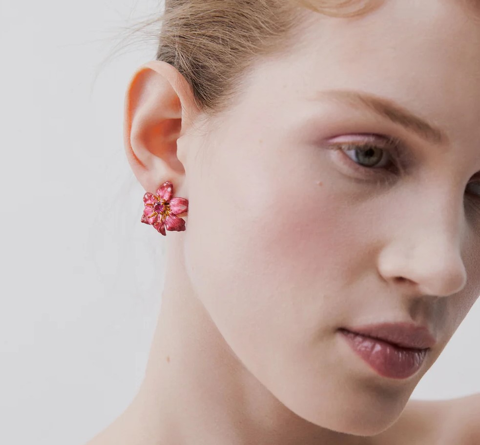 Les Néréides Earings Large Pink Clematis Flower MONTMARTRE 1900