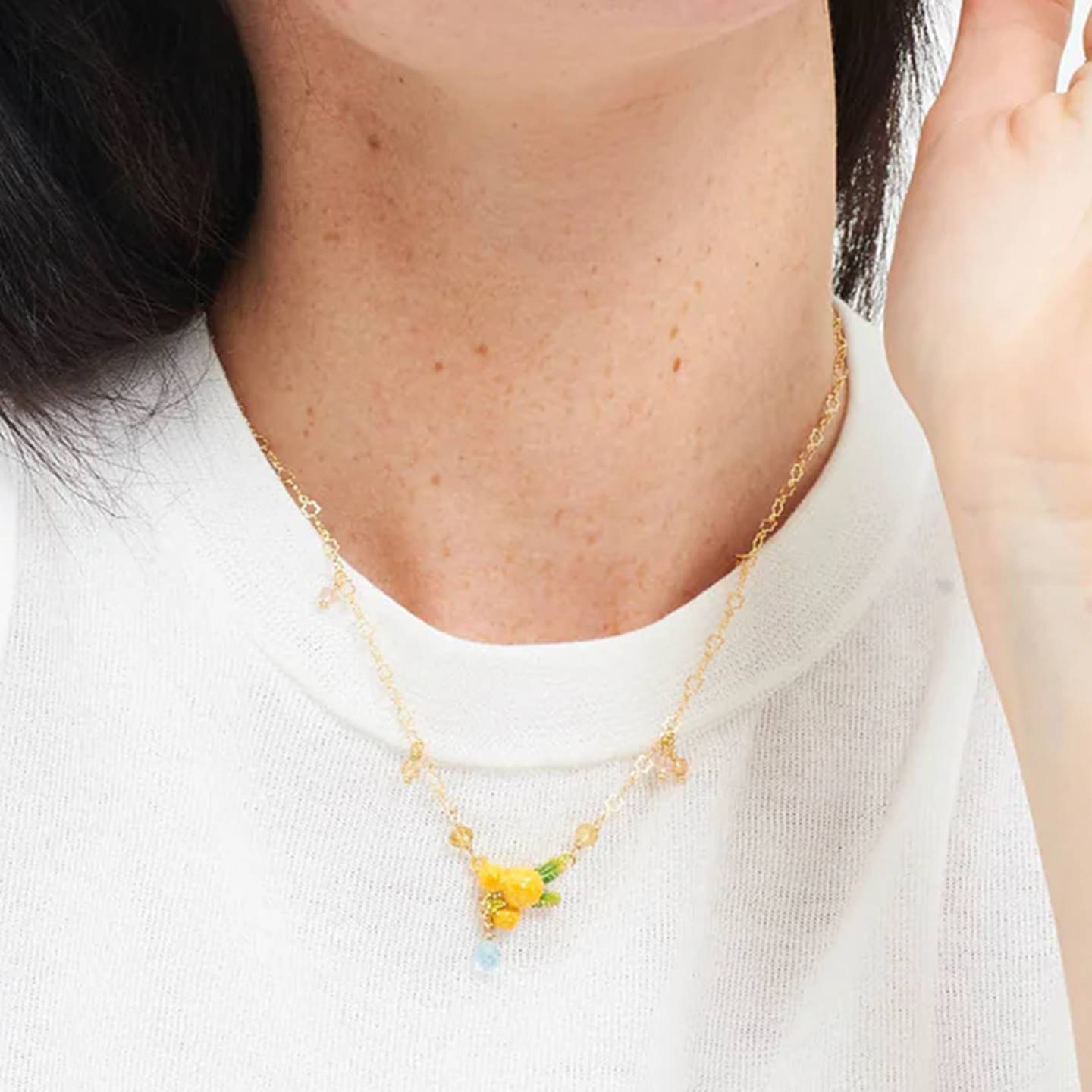 Les Néréides Necklace Mimosa Flower and Little Pearls JARDINS DE PROVENCE [LNABJP312/1]