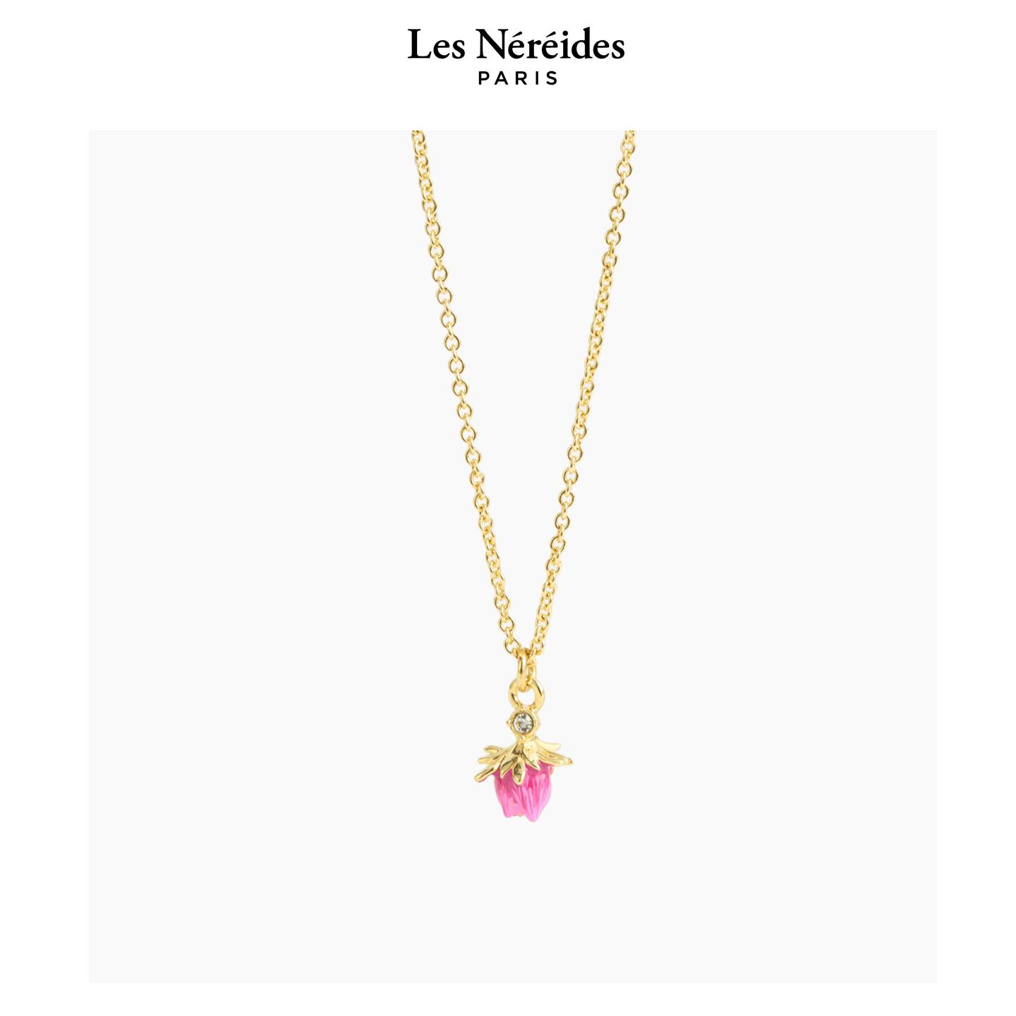 Les Néréides Necklace Rosebud and White Crystal PROMENADE A BARBIZON [LNAWBB307/1]