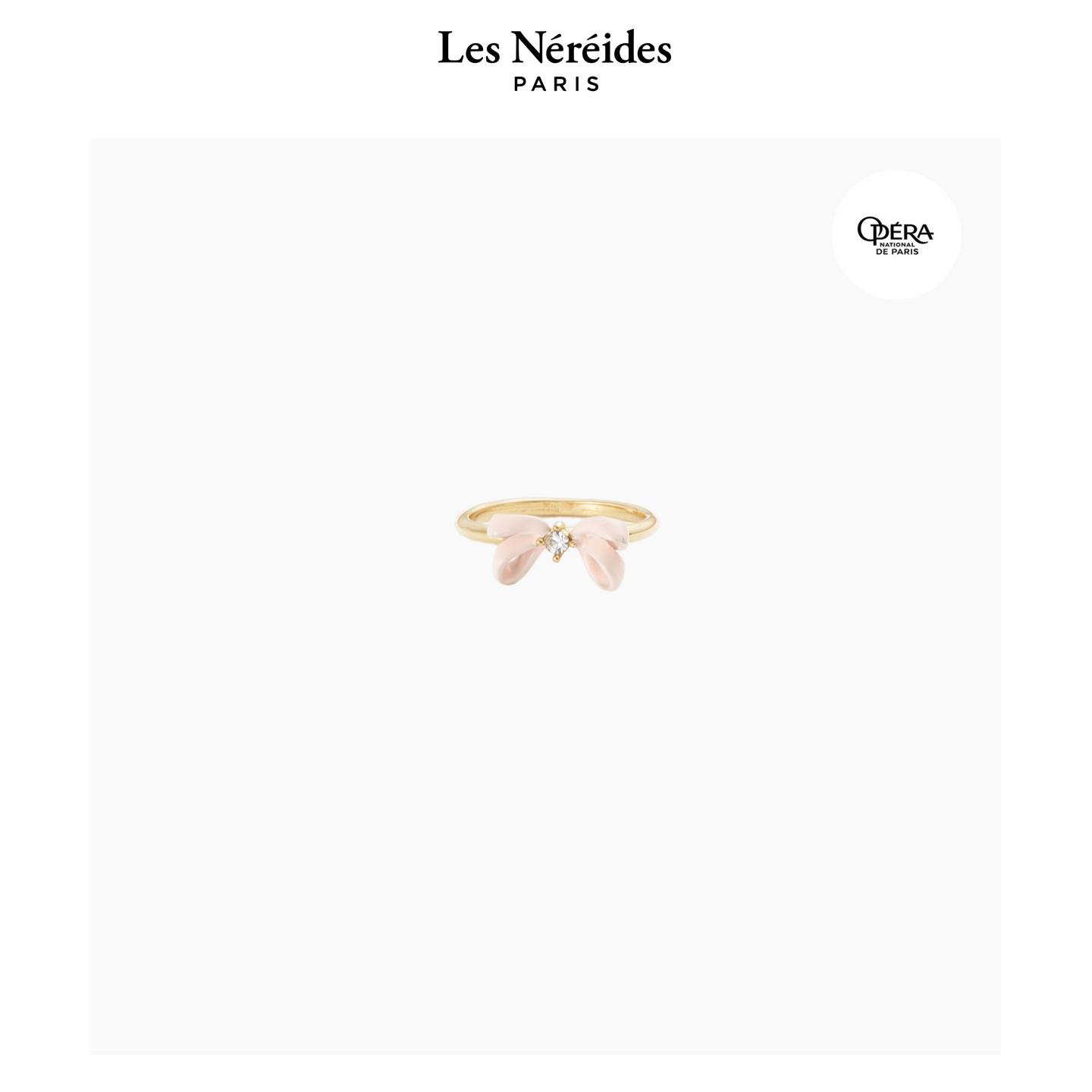 - Adjustable hand-enamelled pink ribbon ring with a faceted crystal in the centre. To celebrate the 150th anniversary of the Palais Garnier, Les Néréides has designed a collection of jewellery infused with the very spirit of the Opera.