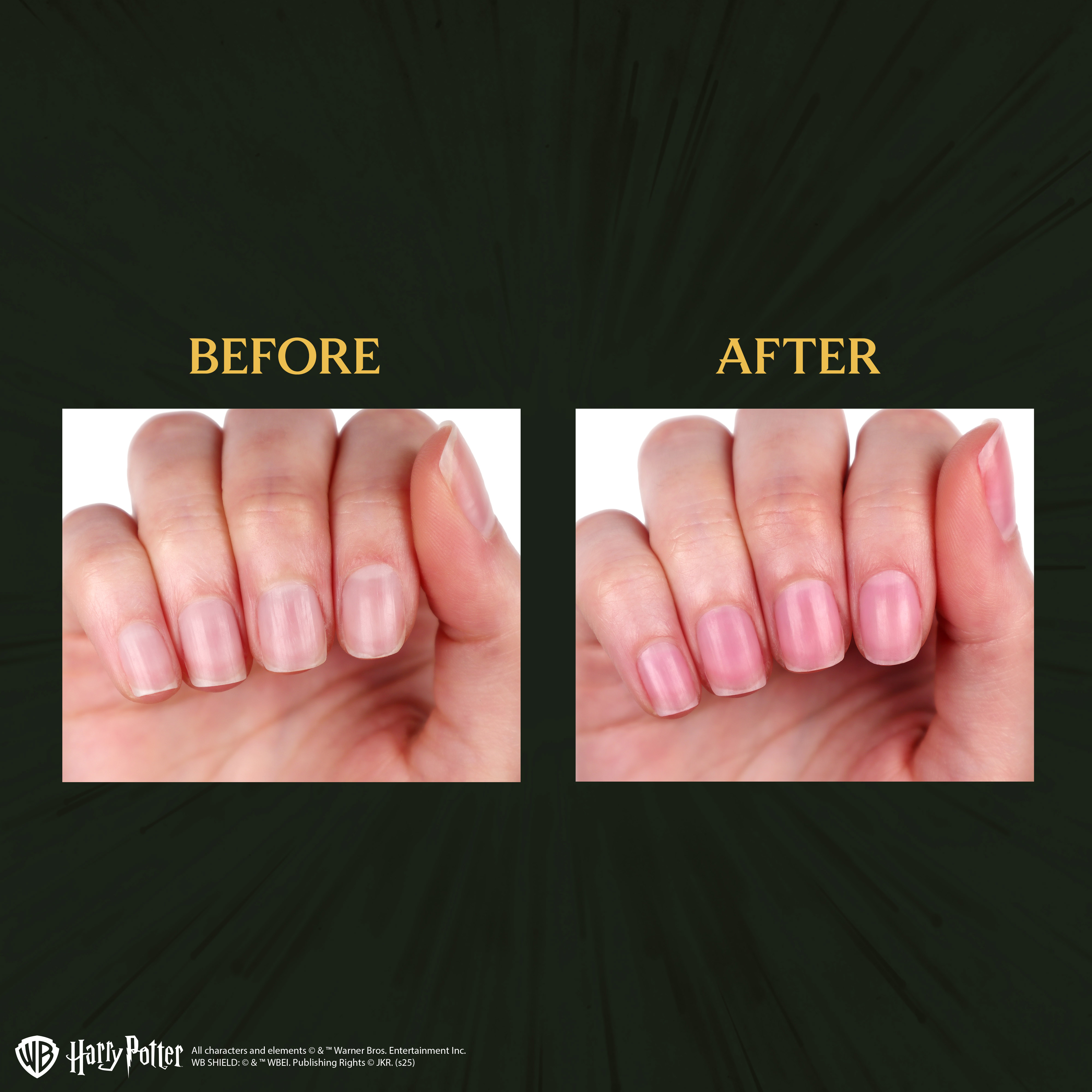 Cloak of Invisibility. Meet the first-ever pH-reactive nail tint. This enchanting pearlescent black veil adapts to your natural chemistry, transforming into a soft, glowing pink. Infused with Vitamin C + E, it strengthens, hydrates, and brightens while correcting discoloration. Remove to unveil tinted nails - no polish needed!